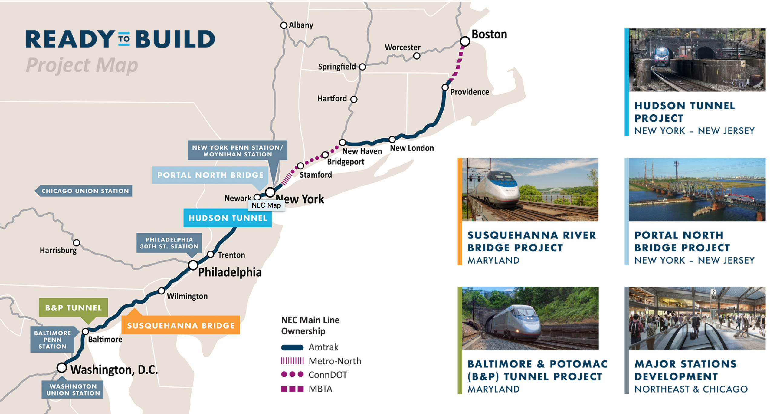Series of six promotion videos featuring Amtrak's "Ready to Build” initiative for critical infrastructure projects.