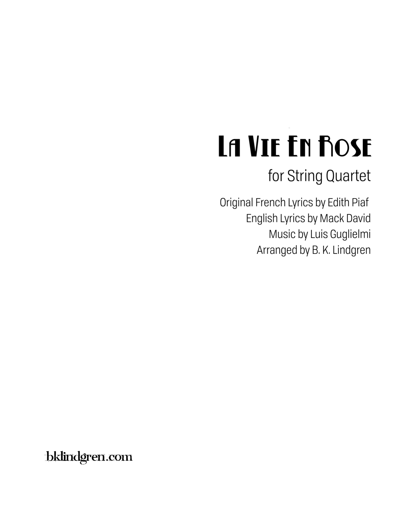 Arranged for String Quartet